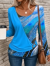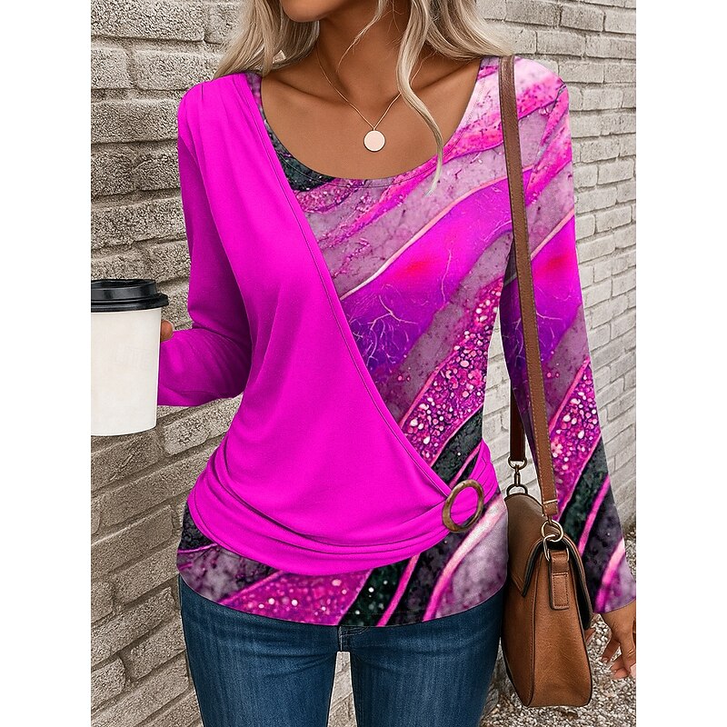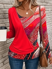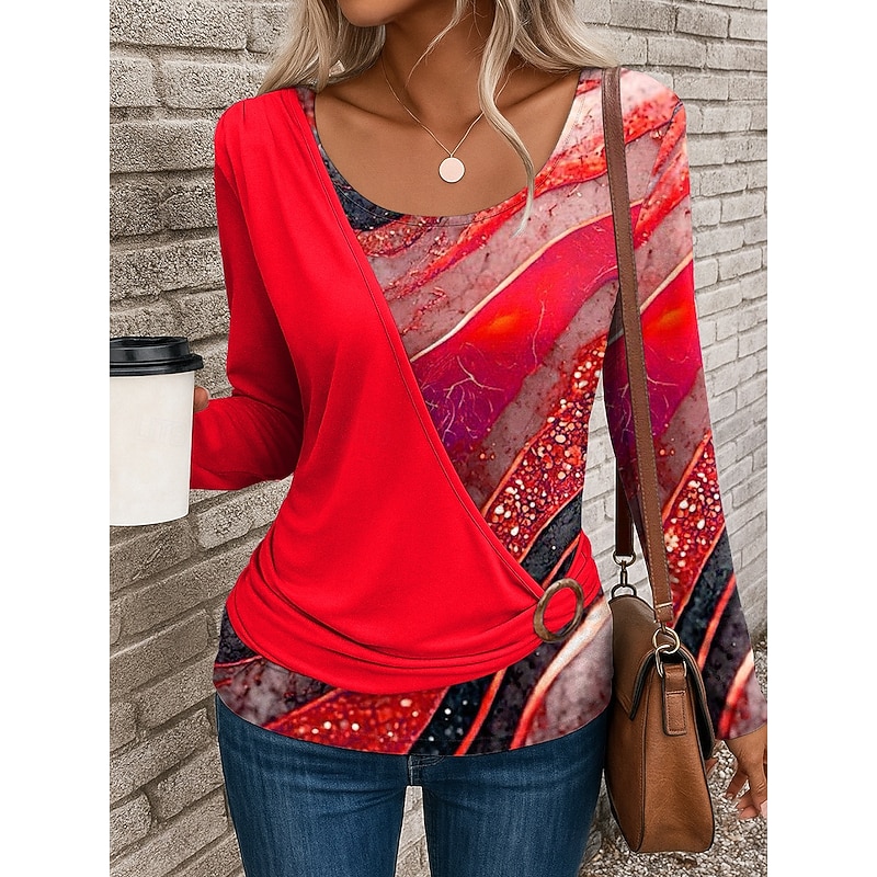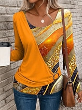 More information about Women's T Shirt Graphic Geometric Stylish Casual Long Sleeve Crew Neck Regular Tops Daily Patchwork Print Yellow Red Blue Purple Green Summer Fall Winter