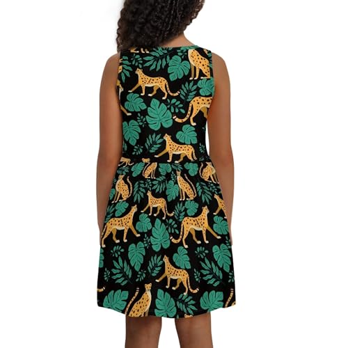 Girls Dress Sleeveless Crewneck A-line Dress Swing Flared Casual Party Dress with Pockets 6
