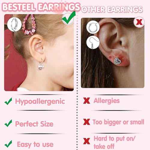 Item display length: 2 centimetersItem width: 3 centimetersMaterial: Stainless SteelMetal type: Stainless SteelBack Finding: Lever BackEarring design: HoopGirls Earrings Set: This dangle hoop earrings set for girls features 16 pairs of hypoallergenic earrings designed for girls and women. Enjoy a delightful variety of styles including animals, flower, butterfly, cat, heart, strawberry, rabbit, CZ huggie earrings to suit any occasionSafety Design for Ears: These mini hoop earrings for girls have an inner diameter of 10mm. Unlike regular ear hooks (Not securely worn, easily hurt, and catch hair / clothes), our drop huggie hoop earrings pack is designed with surgical steel round earring hooks that are safe, firm, easy to put on and won't fall off easilySurgical Steel Earrings: Made from premium 316L stainless steel, these leverback kids earrings are hypoallergenic, not easy to fade, making them perfect for sensitive ears. You can wear them for a long time whether exercising or sleeping. Enjoy a smooth feel against the skin, ensuring comfort and durability for daily wearVrsatile Usage: Perfect for various occasions, these cute dangle hoop earrings for girls make great surprise for birthdays, holidays, or special celebrations. Ideal for girls, enhancing their jewelry collection with trendy optionsAfter-sales Service: Packaged beautifully, this stainless steel earrings for teen girls makes an excellent present. Our dedicated customer service team is ready to assist with any inquiries or concerns, ensuring your satisfaction with every purchase