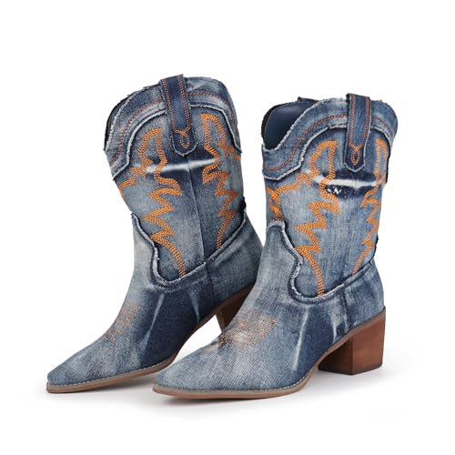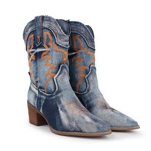 HOT ! Hawkwell Women's Embroidered Stitched Rodeo Boots Pointed Toe Chunky Block Heel Classic Pull On Cowgirl Ankle Western Booties