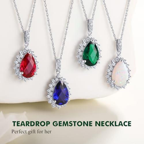 More information about 925 Sterling Silver Teardrop Necklace for Women Huge Created Gemstone Solitaire Halo Pendant Pear Cut Birthstone Necklace
