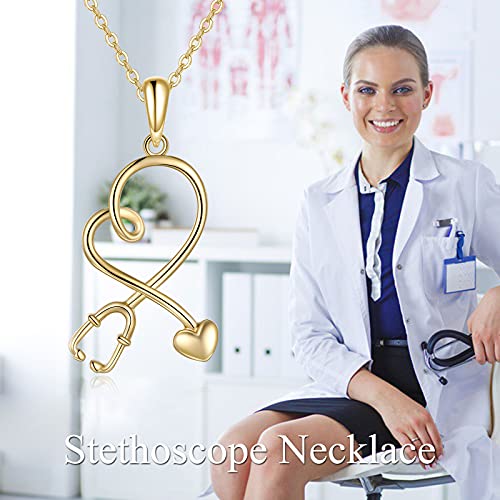 HOT ! KECHO 14k Real Gold Stethoscope Necklace for Women, Fine Gold Pendant Jewelry Birthday Gifts for Nurse Doctor