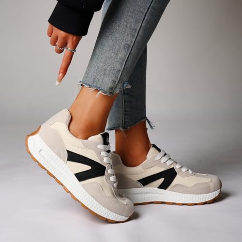 Sole material: RubberOuter material: Faux LeatherClosure type: Lace-UpChic and Modern DesignοΌThe shoes feature a combination of multiple materials with distinct and eye - catching layers. Wearing these stylish casual sneakers shows off your fashionable style and they are perfect for spring and autumn seasons.Comfort guarantee: The shoe upper is soft and waxy in texture, providing a comfortable wearing experience. It is durable and wear - resistant. With a proper height - increasing design, you can walk freely and feel like walking on clouds, enjoying a comfortable experience.All - Purpose Wear:Perfect for various activities like light exercise, shopping, or casual outings, these sneakers are essential for the modern woman.Artificial Leather:Made with high-quality artificial leather, these sneakers offer durability and a sleek look.24 hours customer service:if you have any dissatisfaction when receive goods, pls contact us, we will deal with it instantly.