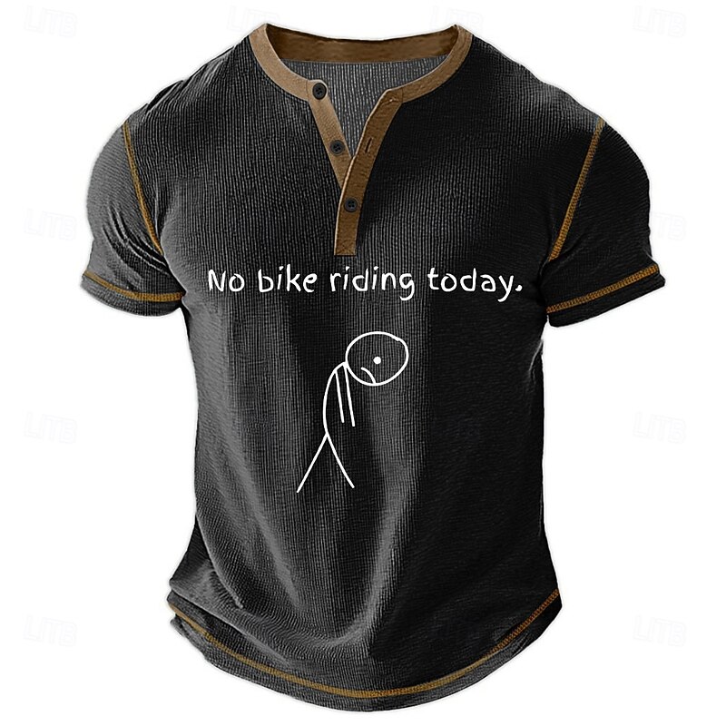 Men's Funny Cycling Graphic T-Shirt Short Sleeve Henley with "No Bike Riding Today" Print 1