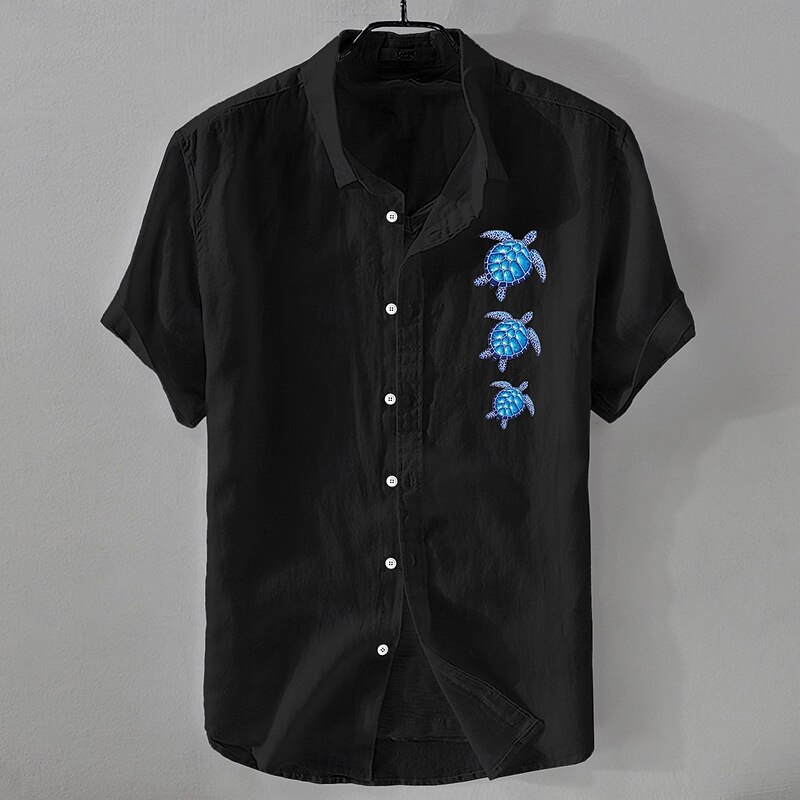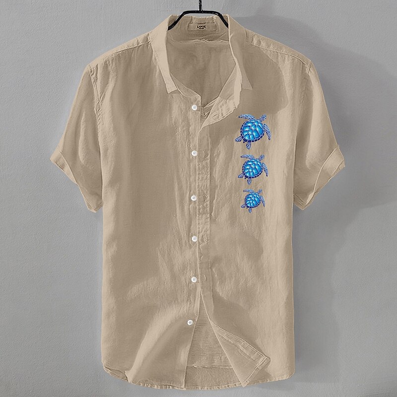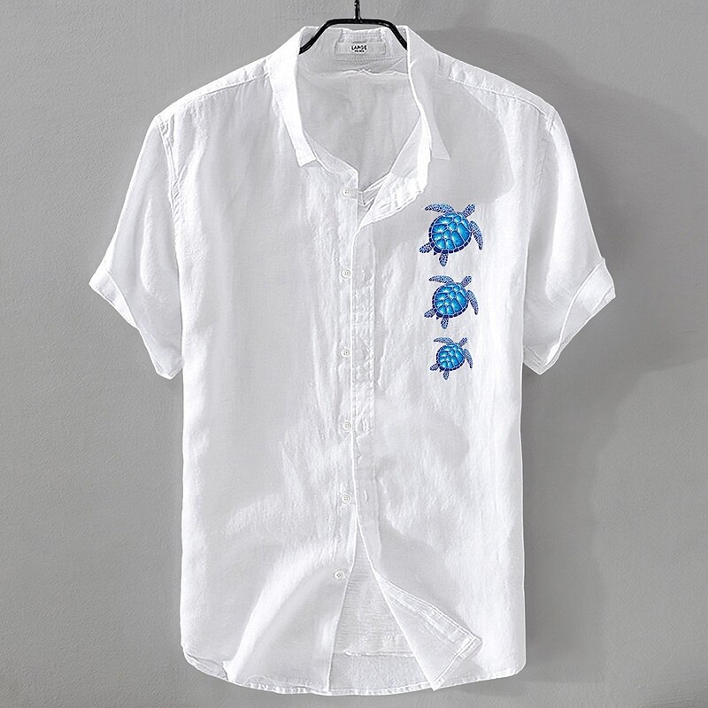 More information about Men's Shirt Linen Shirt Summer Shirt Beach Shirt Button Up Shirt Turtle Vacation Holiday Black White Pink Blue Short Sleeve Turndown Summer Clothing Apparel