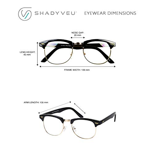 ShadyVEU Classic 80s Style Vintage Club Half Rimmed Frame Clear Lens UV400 Horn Accent Rimless Men Women Eye Glasses 1