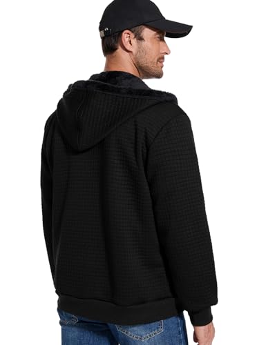 Flygo Mens Fleece Hoodie Jacket Jacquard PlaidCloth Zipper Sherpa Lined Sweatshirt Jackets Winter Warm Coat 1