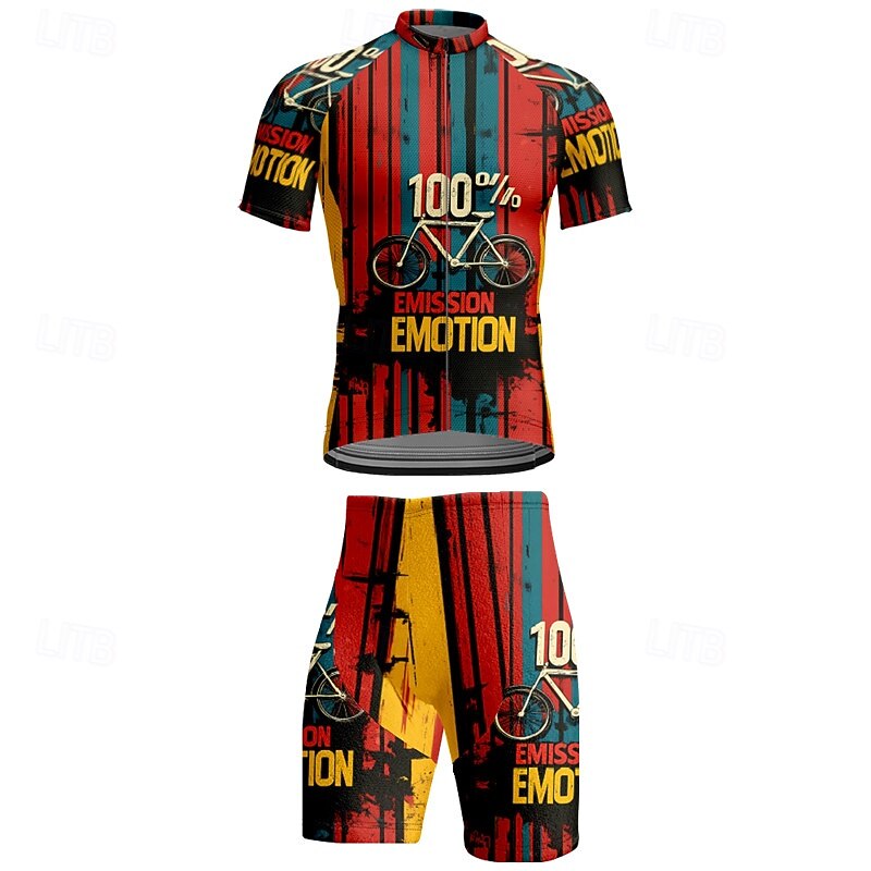More information about Men's Cycling Jersey with Shorts Stripes Letter & Number Short Sleeve Bike Clothing Suit with 3 Rear Pockets Mountain Bike MTB Road Bike Cycling Front Zipper Sweat wicking Comfortable Breathable