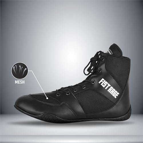 More information about FISTRAGE Boxing Shoes Lightweight Microfiber Leather Kickboxing Training and Fighting Boots Pro Fighters with Mesh and Rubber Sole for Extra Grip - Ventilated Design - Men, Women, Kids Sizes Along With Sting Bag