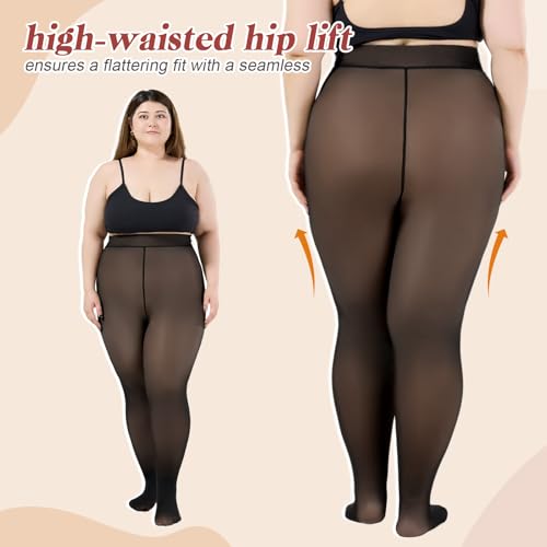 Women's Plus Size Fleece Lined Tights,Winter Warm Fake Translucent Tights,Thermal Thick Pantyhose Leggings 4