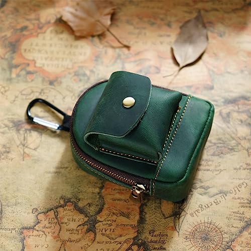 HOT ! Leather Coin Purse, Soft Change Purse with Hook and 2 Pockets, Mini Coin Pouch Holder For Men Women (Green)