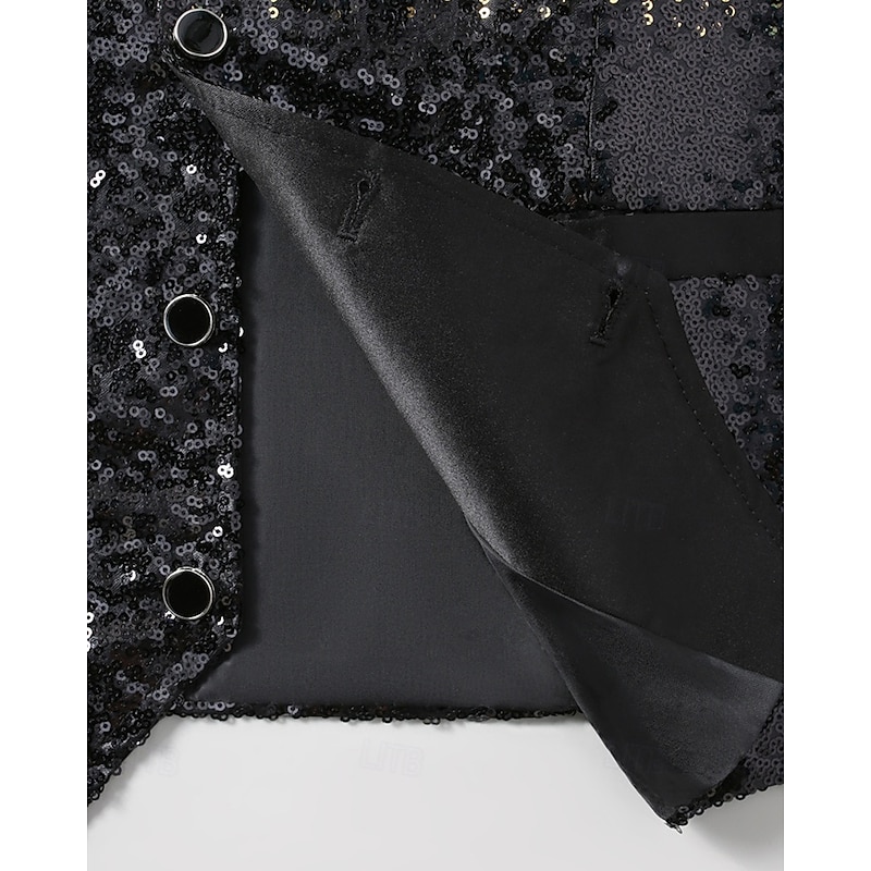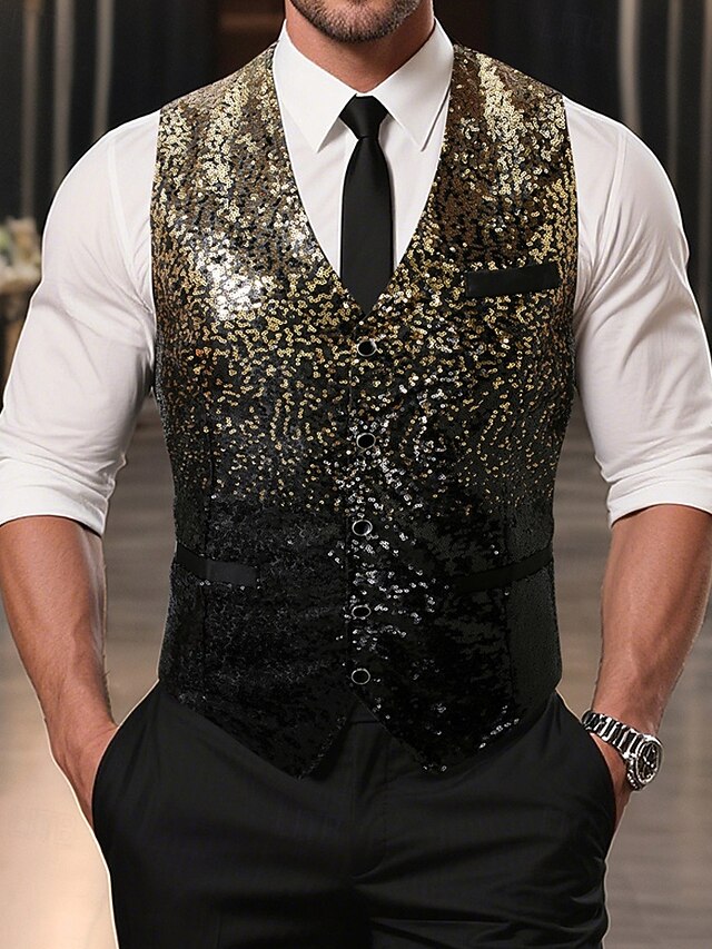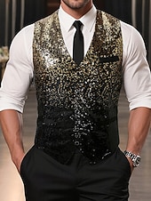 More information about Men's Vest Waistcoat Gilet Vacation Party Business Fashion Casual Spring Fall Sequins Buttons Polyester Comfortable Gradual Single Breasted One-button V Neck Regular Fit Gold Vest