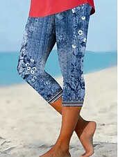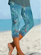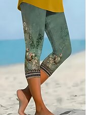 More information about Women's Leggings Vacation Vintage Fashion Calf-Length High Waist Floral Graphic Printing Thermal Warm Breathable Soft Stretchy Outdoor Vacation Street Lake blue Robin's Egg Blue Green ash-colored