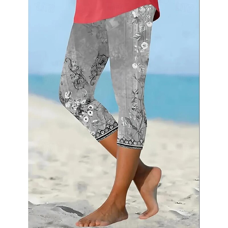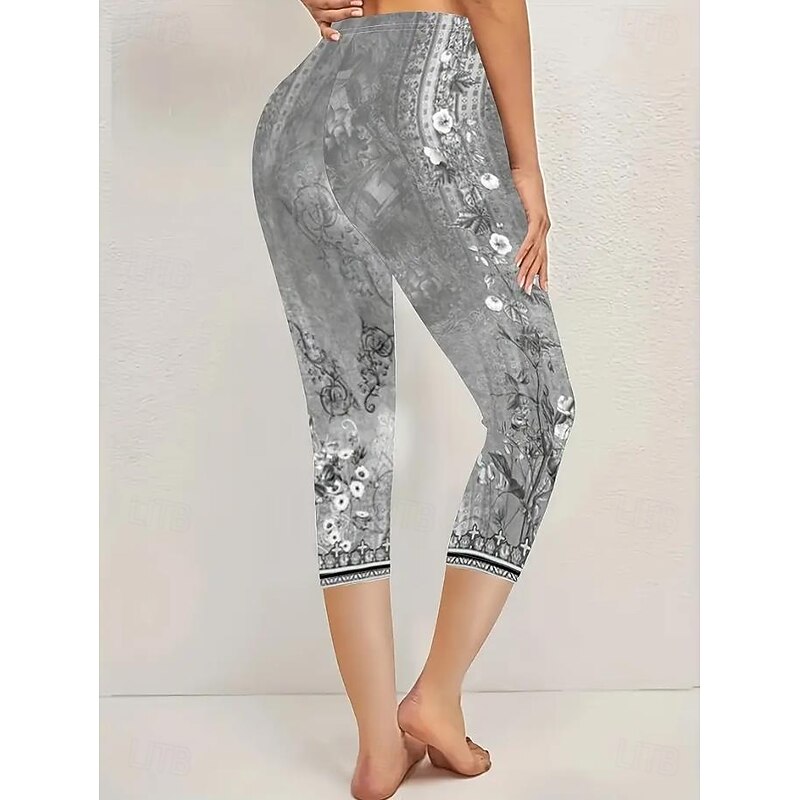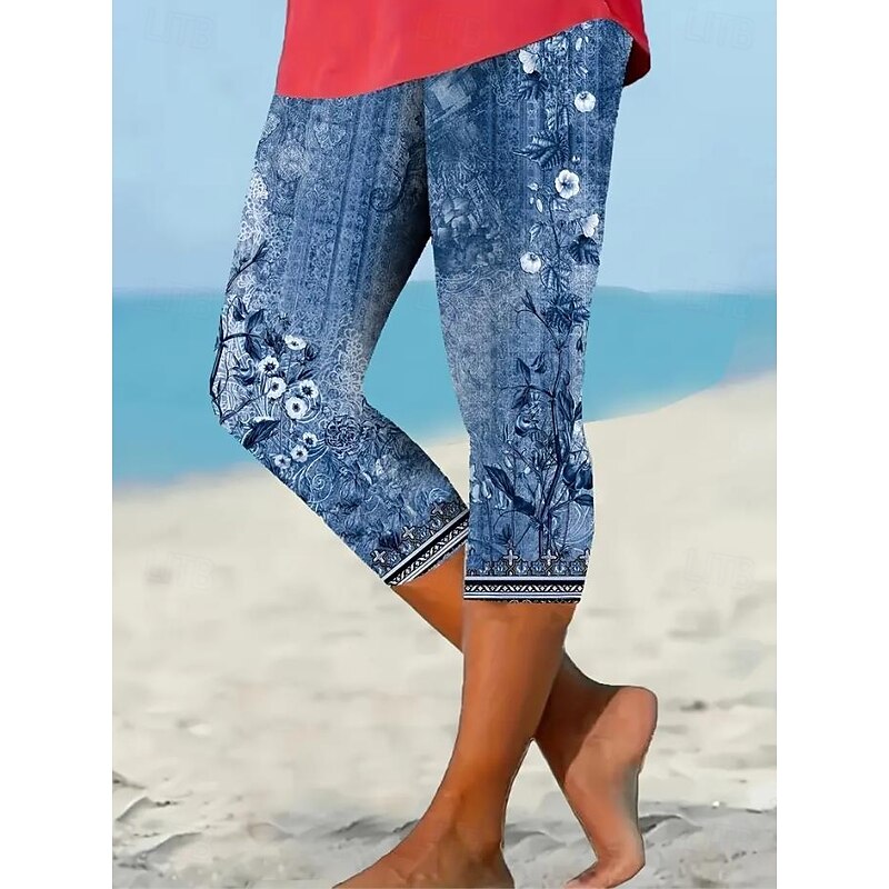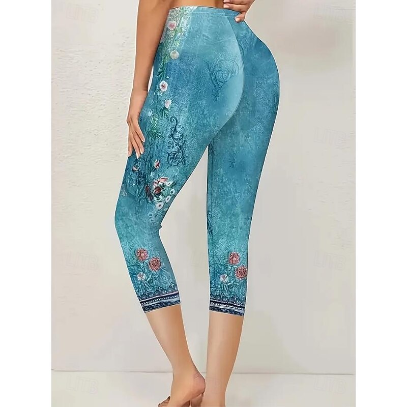 HOT ! Women's Leggings Vacation Vintage Fashion Calf-Length High Waist Floral Graphic Printing Thermal Warm Breathable Soft Stretchy Outdoor Vacation Street Lake blue Robin's Egg Blue Green ash-colored