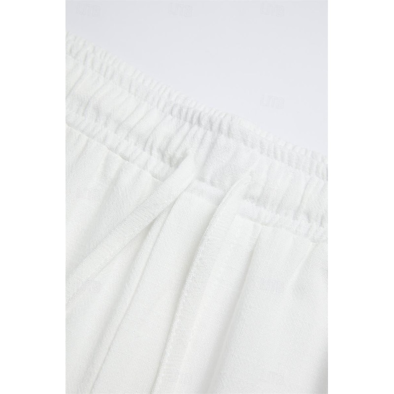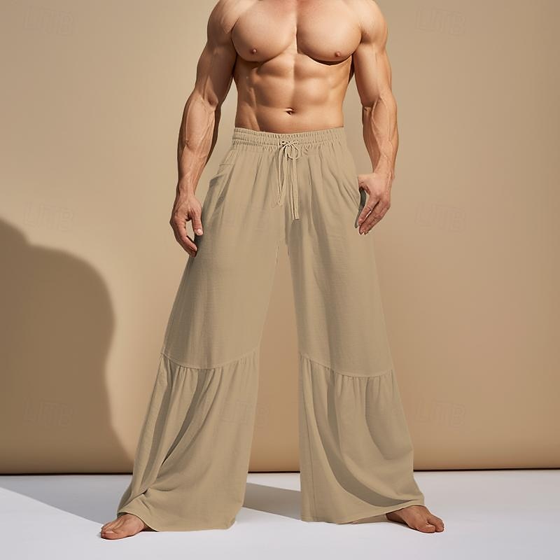 More information about Men's Culottes Wide Leg Linen Pants Trousers Summer Pants Drawstring Patchwork Elastic Waist Plain Comfort Breathable Casual Daily Holiday Fashion Classic Style Black White