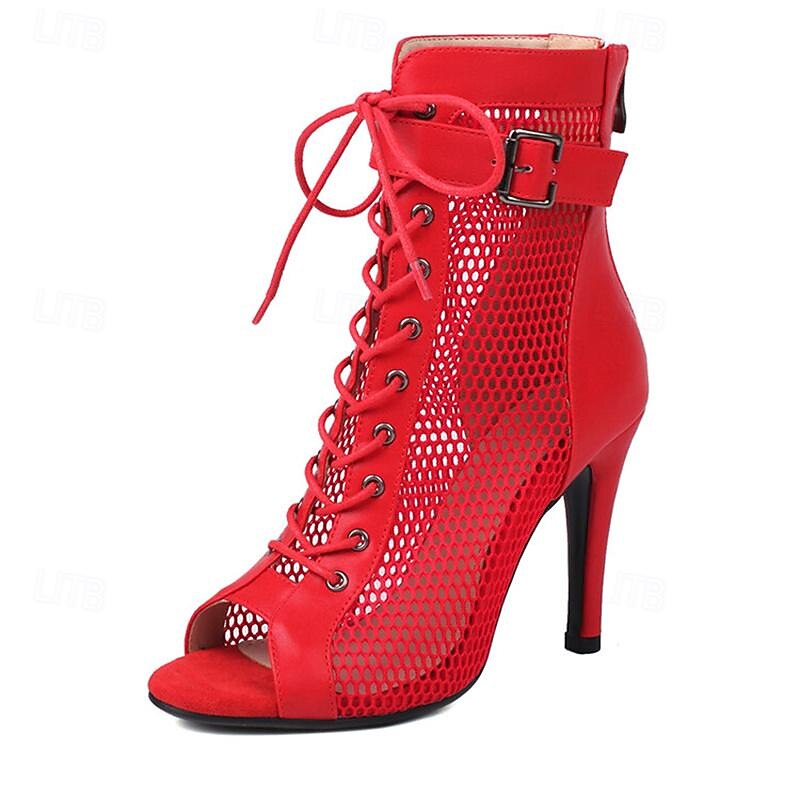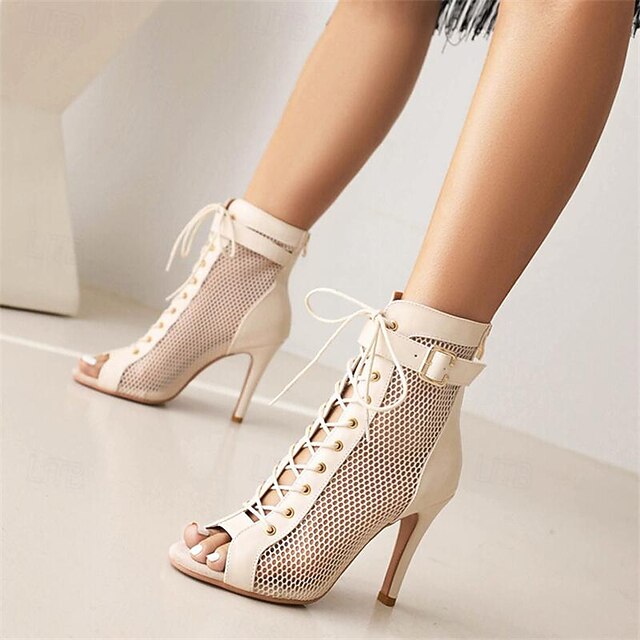 More information about Women's Heels Lace Up Sandals Strappy Sandals Sandals Boots Summer Boots Party Club Buckle Lace-up Stiletto Open Toe Fashion Sexy Microbial Leather Mesh Zipper Almond Black Red