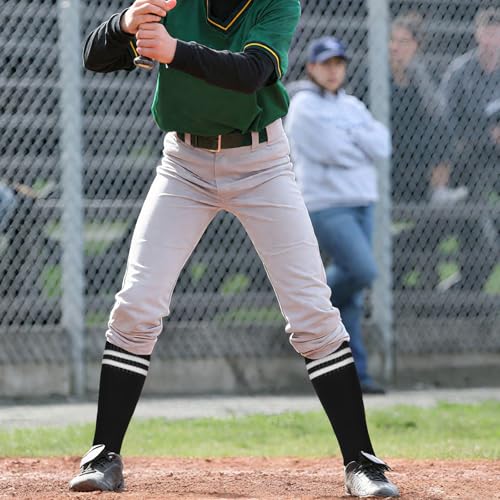 • Durable & Comfortable Baseball Socks: Baseball socks are made of polyester and cotton fabrics, which are breathable and sweat-absorbent, suitable for different seasons. The top of the socks are double stitched with elastic at the ankle and top to keep them from falling off during intense workouts.