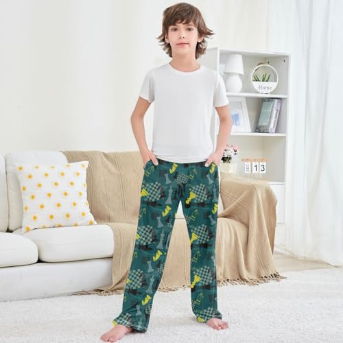 Boy's Pants Doodle Chess Piece Pattern Jogger Pants Elastic Waist Long Bottoms Trousers with Pockets 6-14 Years