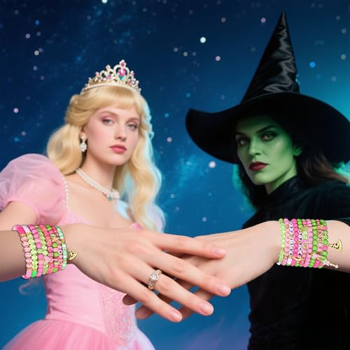Pink Green Witch Bracelets Crown Witch Hat Friendship Matching Bracelets Stacking Beaded Stretch Bracelet for Glinda Elphaba Movie Fans Gifts