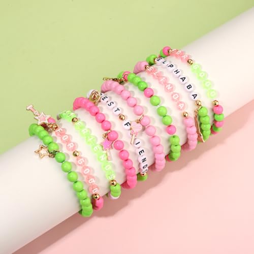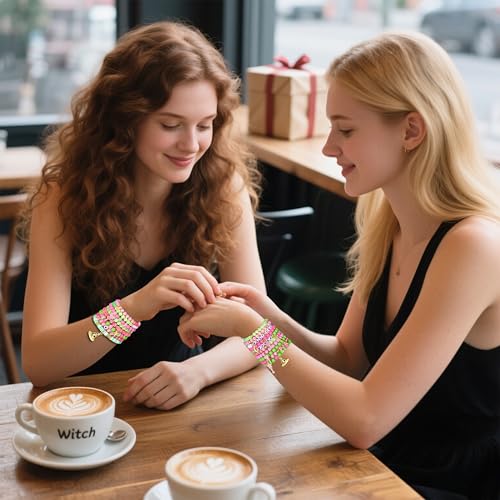 Material: AlloyMetal type: No Metal TypeClasp type: StretchChain type: Bead ChainGem type: No gemstoneCelebrate iconic friendships with these enchanting pink green friendship bracelets!This witch bracelets set comes with 10pcs stackable beaded bracelets in different styles.Each witch friendship matching bracelet is made up cute pink, white and green beads say FOR GOOD,BEST FRIEND,GLINDA,ELPHABA.and which adorned with witch hat,magic wand,stars and crown. Perfect as witch merch for Elphaba Glinda fans.These pink green matching bracelet design is inspired by the friendship between two witches in the classic movie. Wearing this witch merch jewelry accessory can make you feel more immersive and bring you closer to the characters. The Elphaba Glinda friendship bracelets are stackable, so you can wear them all together or mix and match to create your own unique look.Featuring vibrant colors and a charming accessory design, the ten-piece friendship bracelets set are crafted from pink green crystal and alloy beads, rhinestone alloy charms.superior handmade bracelets that will not irritate your skin.These good bad witch bracelets are designed with a stretchy fit, measure about 6.5-7 inches in length,making them comfortable to wear and easy to adjust to fit most wrist sizes.Friendship bracelets for women are represent the special bond and exquisite friendship between friends,can be worn daily, and are also suitable for special occasions like birthdays,parties,Christmas,Halloween,or dressy occasions.These matching BFF bracelets are meaningful accessories for friends,very suitable for friends to wear together.Whether you're wear for daily, or witch themed parties, this witch bracelet add a mystical touch to any occasions.Stacking witch bracelets are a timeless symbol of connection and camaraderie between friends, share it with loved ones to celebrate friendship and create lasting memories.More than just an accessory, this pink green beaded bracelet makes a meaningful gift for best friend,family,couples,or a women who loves this story of witch friendship.They are also a great gift for any devoted Elphaba Glinda fans! Perfect for everyday use. High quality materials and excellent craftsmanship ensure long-lasting durability.