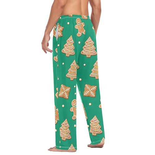 Men's Pajama Bottom Christmas Gingerbread Cookies Pattern Cotton Pajama Pants Drawstring Sleepwear Long Pants Pockets 2