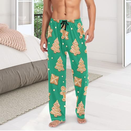 HOT ! Men's Pajama Bottom Christmas Gingerbread Cookies Pattern Cotton Pajama Pants Drawstring Sleepwear Long Pants Pockets