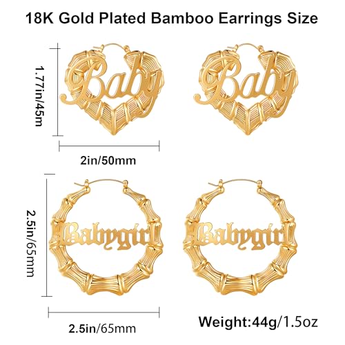• 90 Bamboo Earrings: Oversized bamboo earrings set, stylish and cool. Hoop earrings, heart-shaped earrings, 2 pairs of large gold personalized earrings, you can freely match them to create your own style.