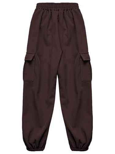 Girls Boys Fall Winter Warm Cargo Pants Kids Fleece-Lined Elastic Waist Joggers with Multi-Pockets 5