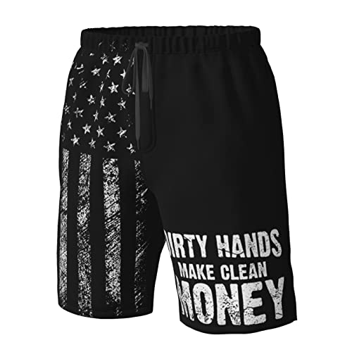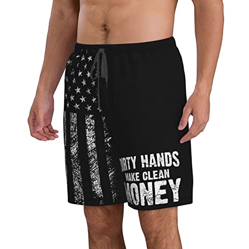 Dirty Hands Make Clean Money Funny Gifts Mens hasty Dry Printed Short Swim Trunks with Mesh Men Swimwear Bathing Suits White-XL