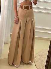 Highlights 1. Elasticity: Enjoy the comfort of a micro-elastic fabric, ensuring a flexible and perfect fit every time you wear it. 2. Waistline: Flaunt your figure with the high waist feature, enhancing your curves and providing a flattering silhouette. 3. Design: Elevate your fashion game with the pleated design, adding a stylish touch and a sense of sophistication to your outfit. 4. Pants Type: Embrace the trendy and chic wide leg style, allowing you to move freely while exuding a fashion-forward look.