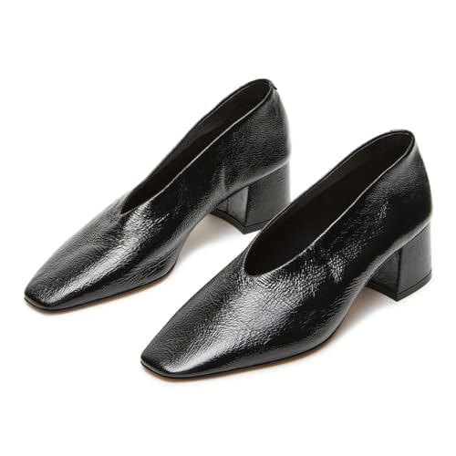 Maiyang Women Classic Closed Square Toe Pumps Block Chunky Low Heels Slip on Daily Office Party Dress Shoes Size 4-16 US 1