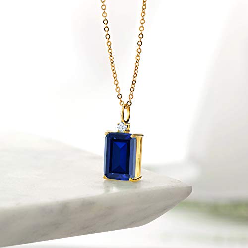 Gem Stone King 18K Yellow Gold Plated Silver Blue Created Sapphire Pendant Necklace For Women (10.11 Cttw, Emerald Cut 14X10MM, with 18 Inch Chain) 1