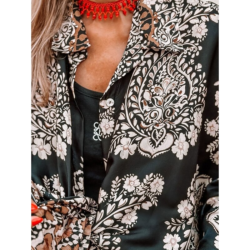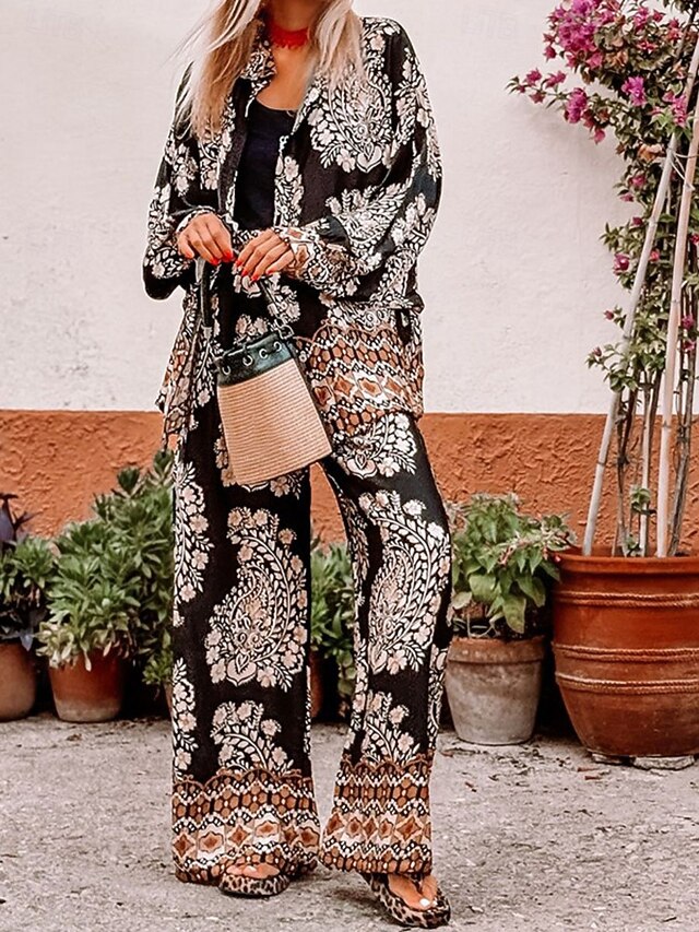 More information about Women's Fashion Streetwear Daily Shirt Blouse Wide Leg Pants Long Sleeve Shirt Collar Floral Print Casual Daily Black Summer Regular Fit