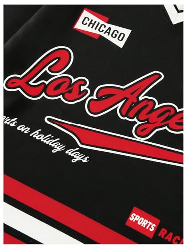 • Features: Jersey shirt for men, letter graphic, striped, v neck, long sleeve, contrast binding, drop shoulder, loose fit