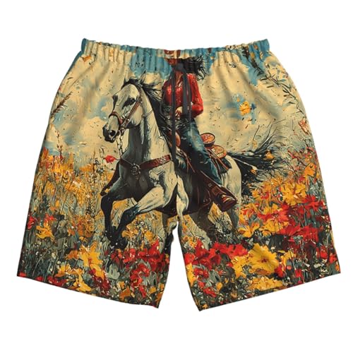 HOT ! Mens Swim Trunks Board Shorts Quick Dry Shorts with Pockets - Cowgirl Patterns Vintage Art