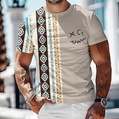 Men's Tribal Grimace T Shirt T shirt 3D Print Crew Neck Shirt Vacation Daily Ethnic Sports Outdoor Casual Daily White Khaki Summer Spring Clothing Apparel S M L XL XXL XXXL 6