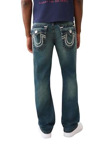 More information about True Religion Men's Ricky Super QT Logo Flap Jeans 34" Inseam – Straight Leg Denim with Flap Pockets