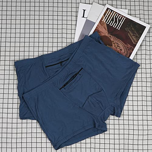 HOT ! LUEXBOX Pocket Underwear for Men with Secret Hidden Pocket, Travel Boxer Briefs, 2 Packs (Blue)