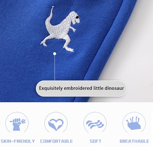 3-Pack Toddler Boys' Cotton Athletic Shorts with Pockets Pull-On Design Active Dinosaur Embroidery, silky and Breathable
