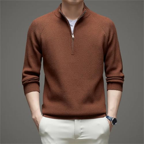 HOT ! Men’S Casual Thick Wool Blend Pullover Sweater Long Sleeve Zipper Mock Neck Warm Knit Jumper Tops