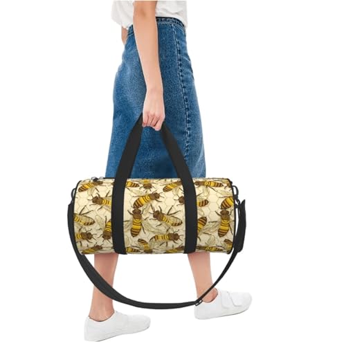 HOT ! Large Duffle Bag for Travel - Vintage Honey Bees Honeycomb Gym Bag for Women Men, Foldable Travel Bags for Women Men with Zippered Multiple Pockets