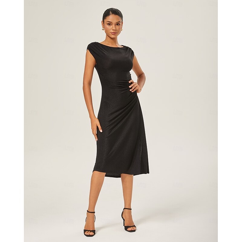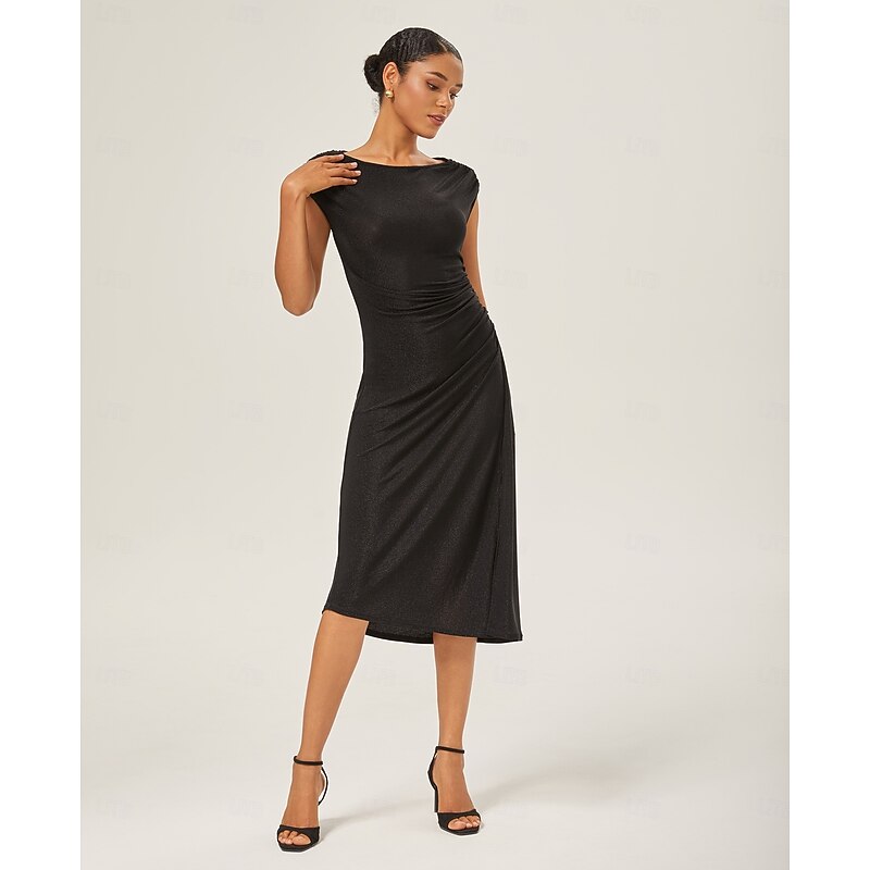 HOT ! Black Glitter Off-Shoulder Cinched Knit Dress