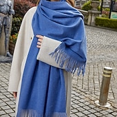 Women's Rectangle Scarf Infinity Scarf Street Holiday Blue Scarf Pure Color 10