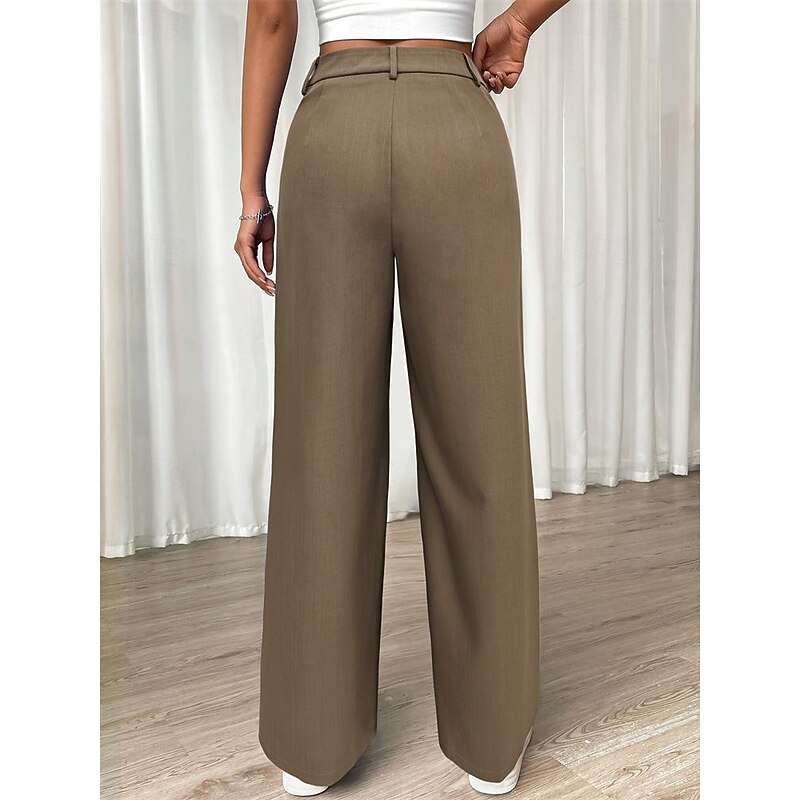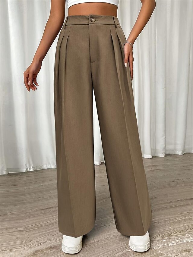 HOT ! Women's Dress Pants Fashion Long Plain Side Pockets Wide Leg Breathability Comfortable Inelastic Daily Wear Khaki Spring & Summer Regular Fit