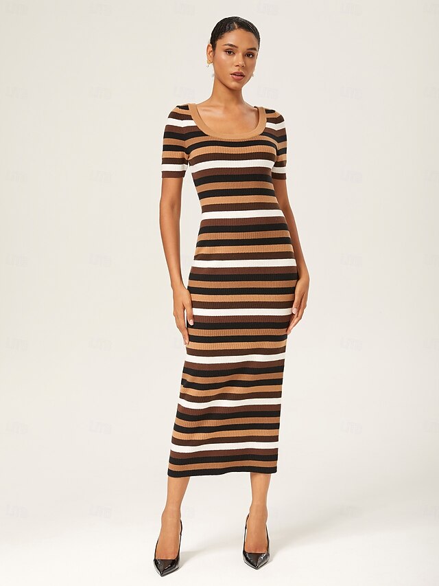 HOT ! Coffee Striped Fitted Maxi Dress