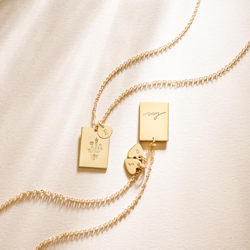 Endless Story 13+6mm Square Pendant Necklace with Tiny Initial Tags, Personalized Mother's Necklace Gift, Custom Dainty Jewelry