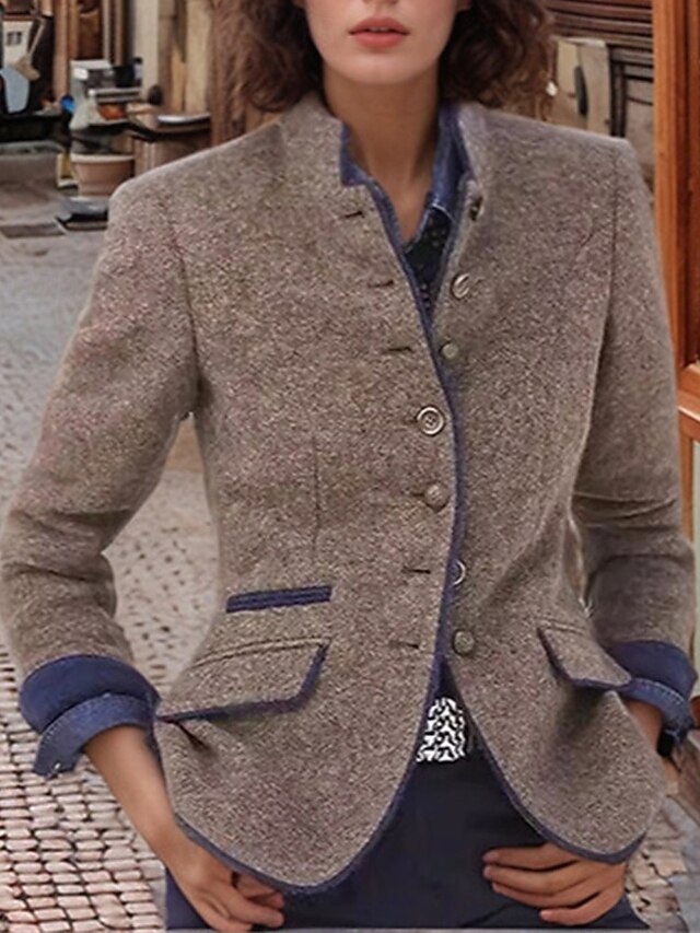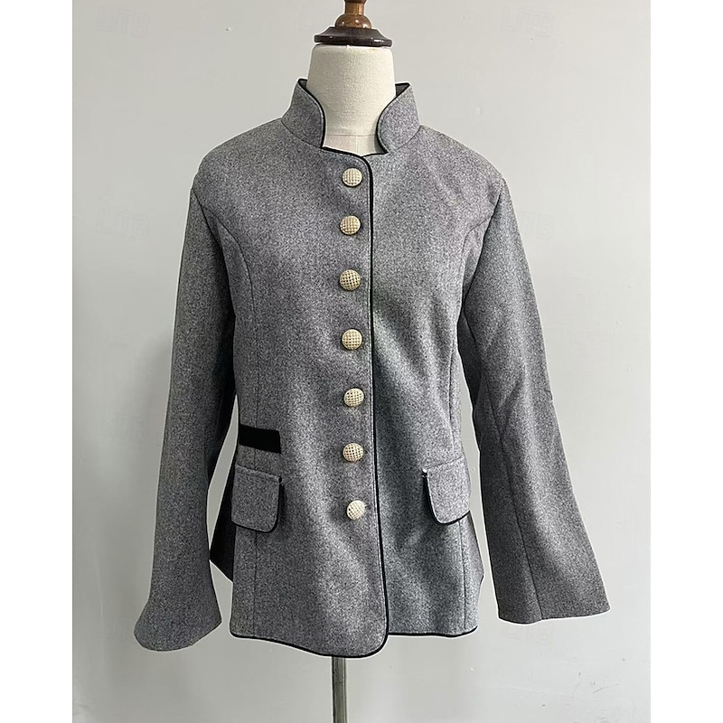 More information about Women's Trench Coat Warm Comfortable Pocket Buttons Fashion Outdoor Plain Going out Weekend Single Breasted Regular Stand Collar Regular Fit Long Sleeve Outerwear Coffee Gray Fall Winter