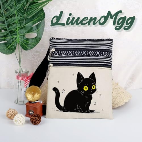 Black Cat Messenger Bag Small Ethnic Pattern Printed Adjustable Strap Crossbody Zipper Bag Black Cat Phone Bag Wallet Cute Shoulder Handbag for Women -7 6