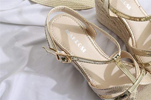 Women's Graceful Wedge Heel Sandals Open Toe T-strap Heels 6