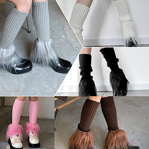 Suxgumoe Women's Leg Warmers, Y2K Knit Knee High Socks, Faux Fur Fuzzy Long Winter Boot Cuffs Cover 6